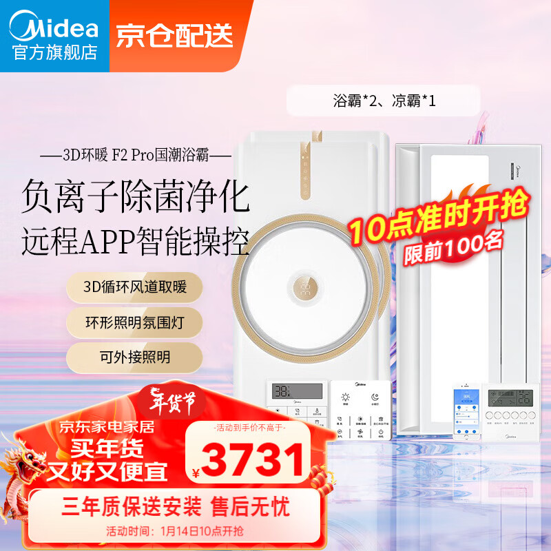 美的(Midea)风暖环形浴霸智能浴室暖风照明排气一体取暖器卫生间集成吊顶双核价格:3925.00元!