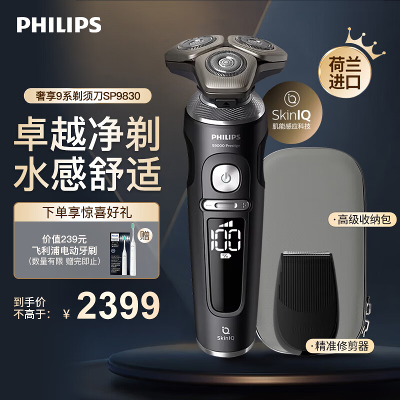 飞利浦(PHILIPS)电动剃须刀SkinIQ肌能感应刮胡刀奢享高端蜂巢9系整机荷兰进口 生日/新年礼物送男友送老公送长辈 高端奢享9系|SP9830【敏感肌适用】 普通装价格:2999.00元!