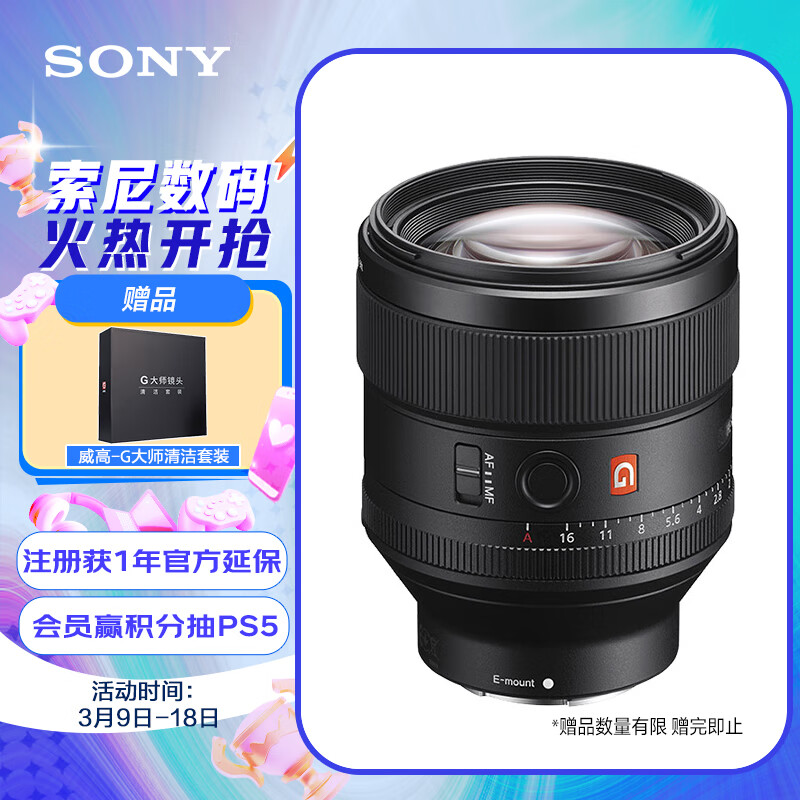 索尼(SONY)FE 85mm F1.4 GM 全画幅中远摄大光圈定焦G大师镜头(SEL85F14GM)价格:10849.00元!