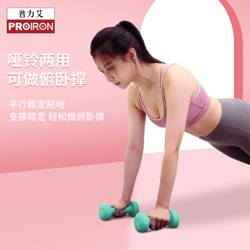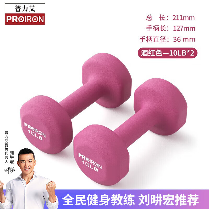 PROIRON普力艾 浸塑磨砂哑铃男女士家用哑铃健身哑铃套装亚铃 10磅*2价格:168.00元!