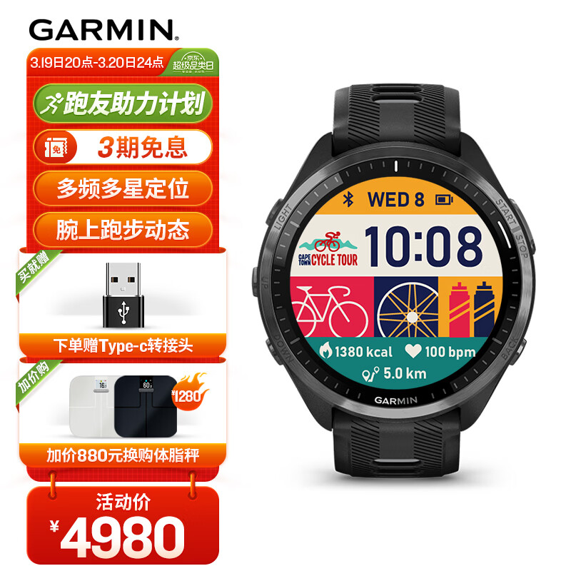 佳明(GARMIN)Forerunner965铁三多频多星网球划船滑雪户外智能运动手表极夜黑价格:4980.00元!