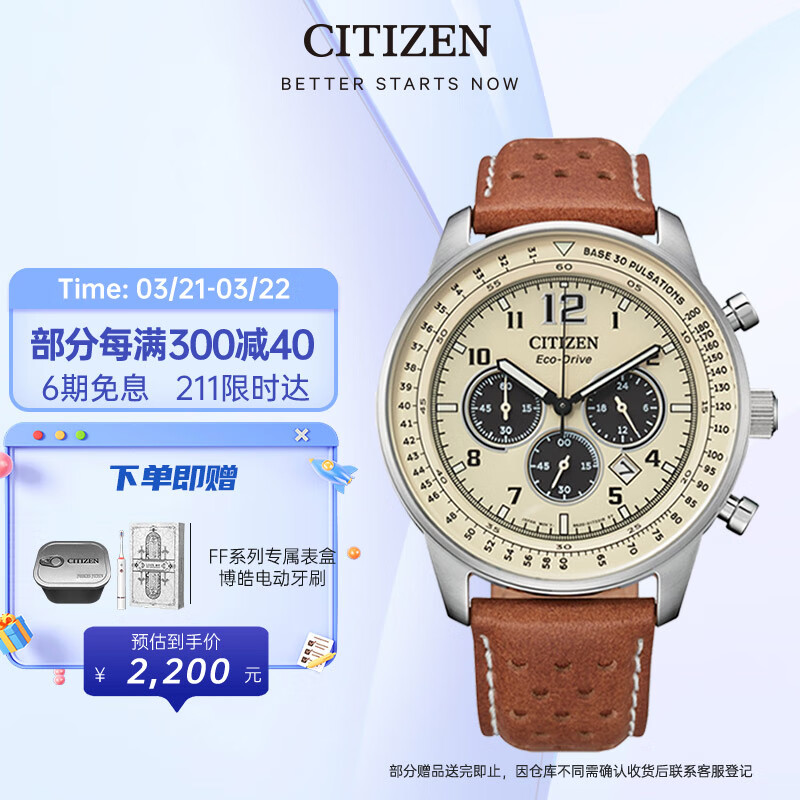 西铁城(CITIZEN)手表男日韩表FF系列光动能三眼盘皮带商务送礼物男友CA4500-16X价格:2400.00元!