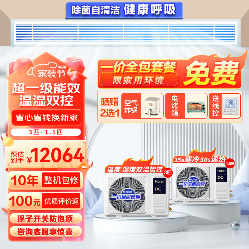 海尔(Haier)中央空调风管机一拖一 组合套餐3匹+1.5匹新一级能效 云舒 全直流变频 KFRd-72NW/72ECD81价格:12699.00元!