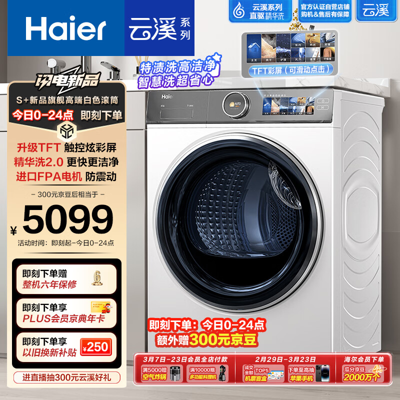 海尔(Haier)滚筒洗衣机全自动 云溪386W 家用10公斤【直驱精华洗XQG100-BD14386WTLU1】超薄大彩屏 以旧换新价格:5399.00元!