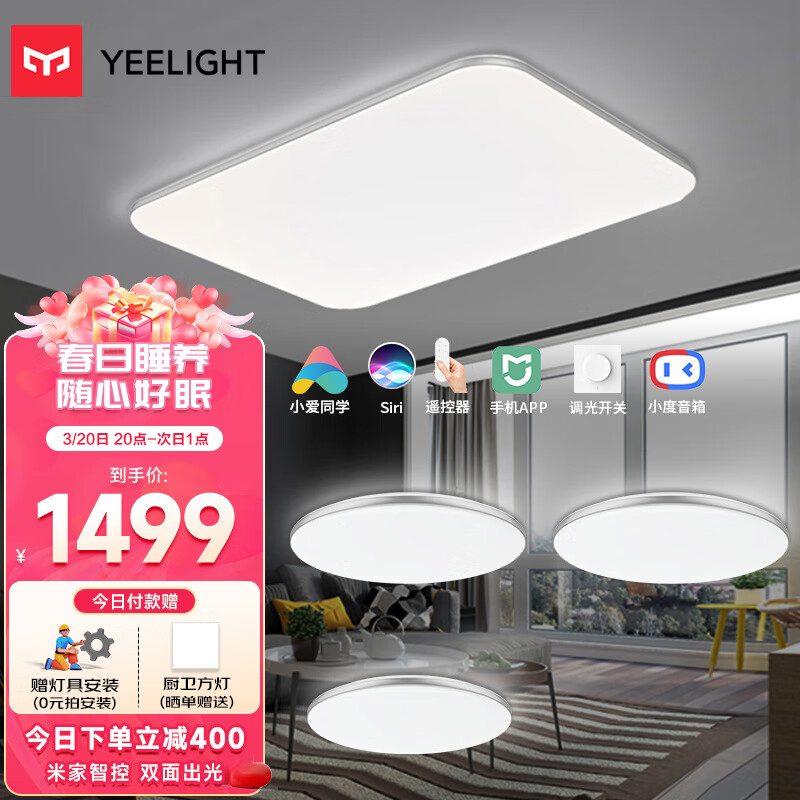 Yeelight易来灵犀led灯吸顶灯 支持米家智能灯具 客厅卧室灯具套餐3室1厅价格:2099.00元!