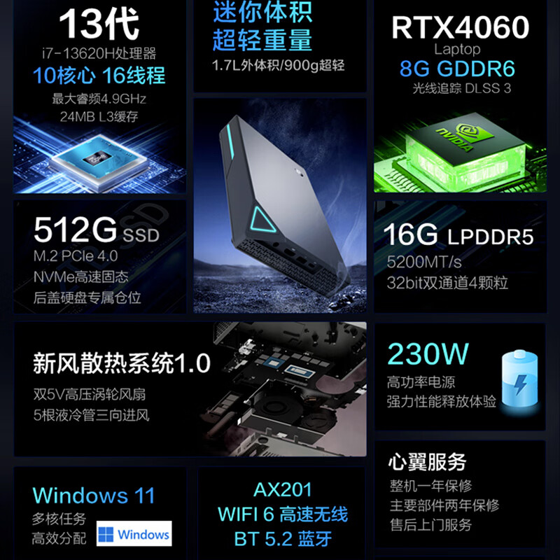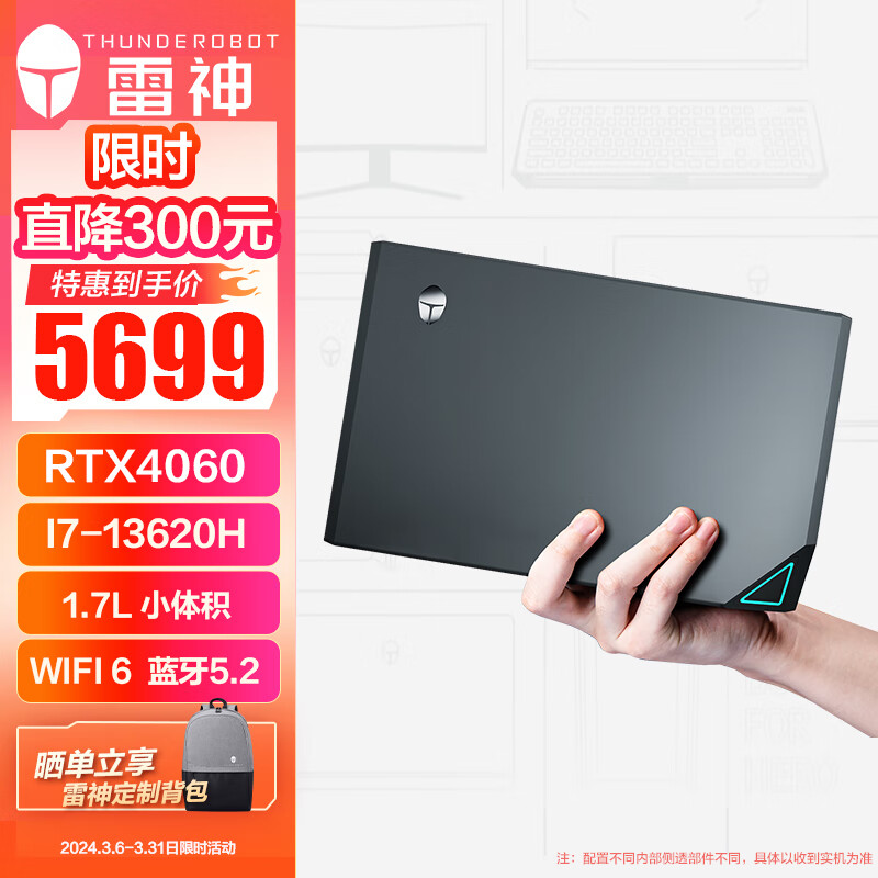 雷神(ThundeRobot)MIX 迷你独显游戏设计AI电脑mini主机(13代i7-13620H RTX4060 16G 512G WiFi6 )价格:5999.00元!