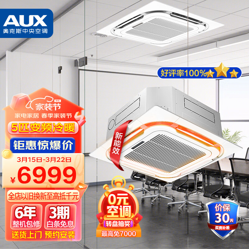 奥克斯(AUX)中央空调 天花机5匹变频冷暖吸顶空调嵌入式吊顶空调商用天井机380V KFR120QW/BPR3YDS(B3)-G 京派价格:6999.00元!