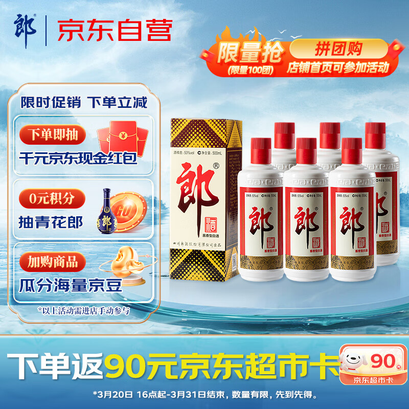 郎酒 郎牌郎酒 酱香型 53度 500ml*6瓶分装非原箱【礼品装】价格:1694.00元!