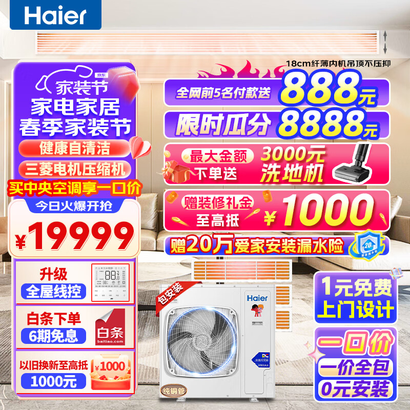 海尔(Haier)中央空调一拖三风管机5匹小多联一级能效全直流变频嵌入式智尊+ RFC125MXSAVB(F)价格:19999.00元!