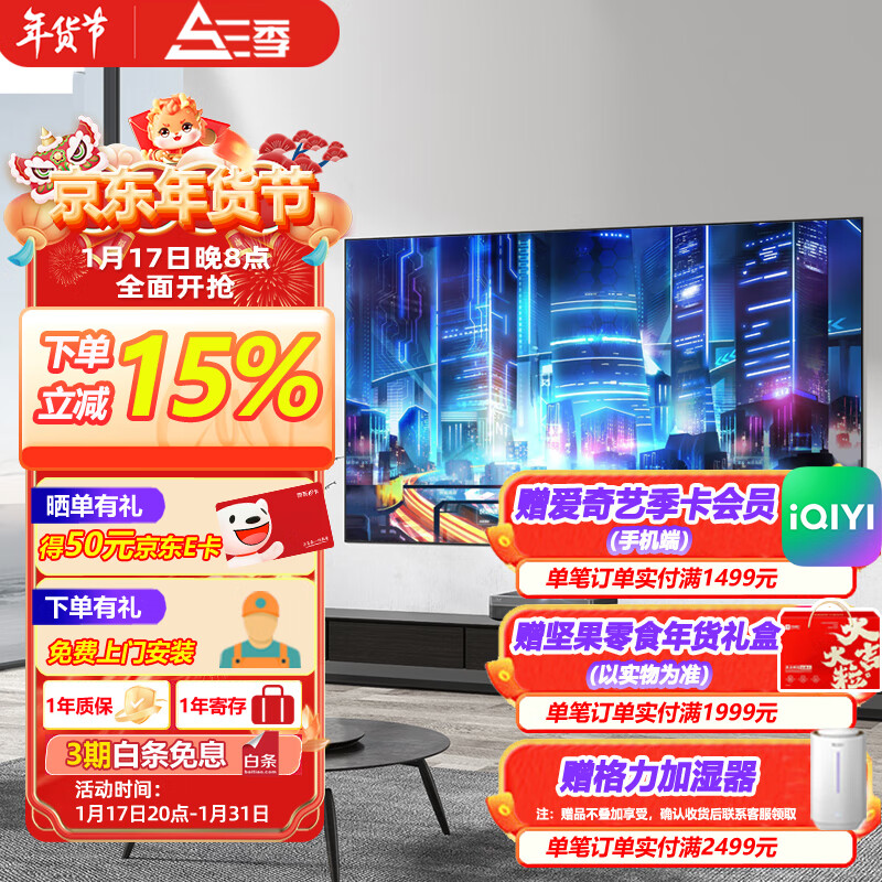 三季黑栅抗光软幕110英寸16:9超短焦投影仪激光电视3D投影软幕客厅壁挂物理抗光超清8K黑栅画框幕布HSR价格:4699.00元!