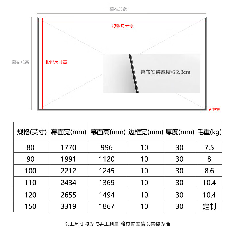 幕布尺寸:110英寸