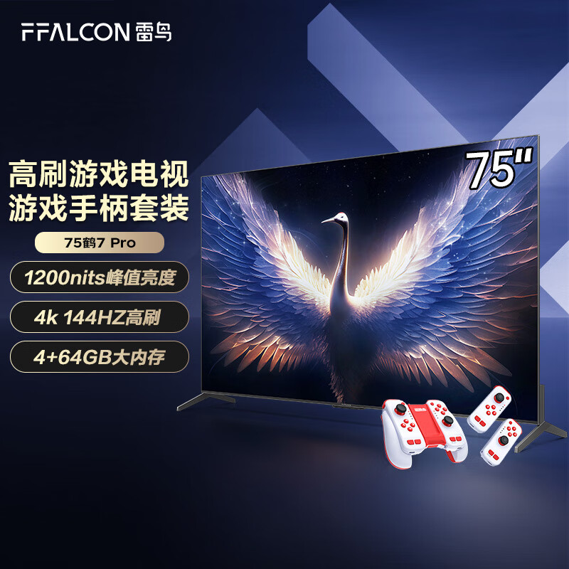 FFALCON雷鸟 MiniLED游戏电视75英寸鹤7Pro+运动加加游戏手柄套装 144Hz高刷 4K液晶电视机75R675C价格:6198.00元!