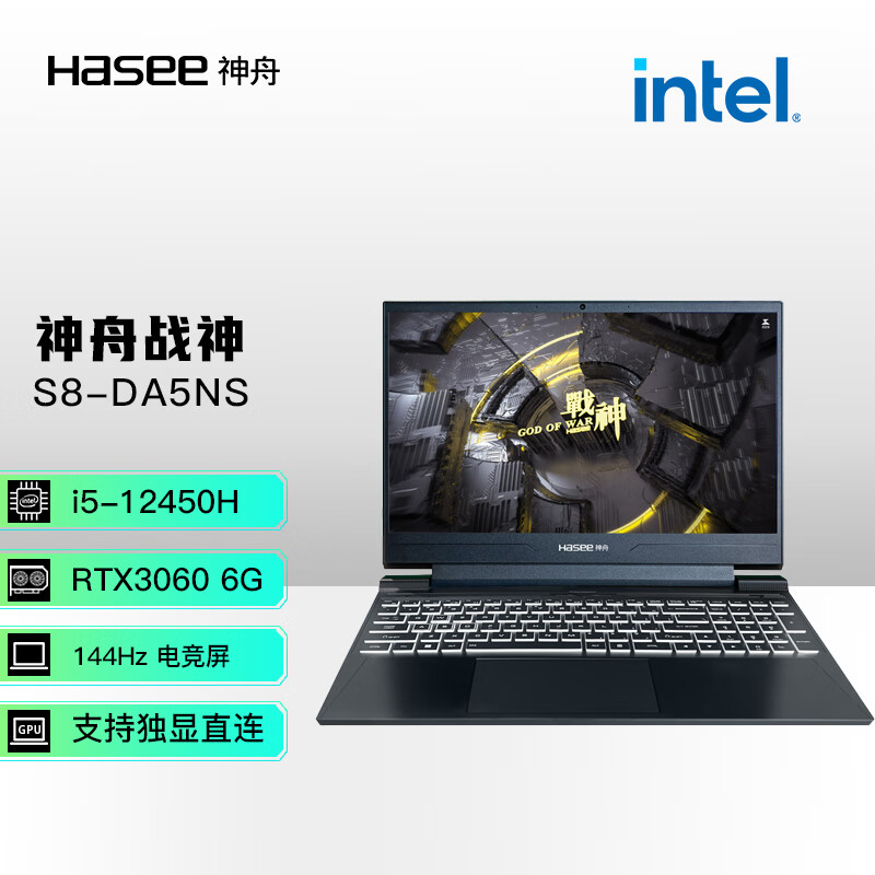 神舟(HASEE)战神S8-DA5NS 12代英特尔酷睿i5 15.6英寸笔记本电脑(12代i5-12450H RTX3060 144Hz)价格:4999.00元!