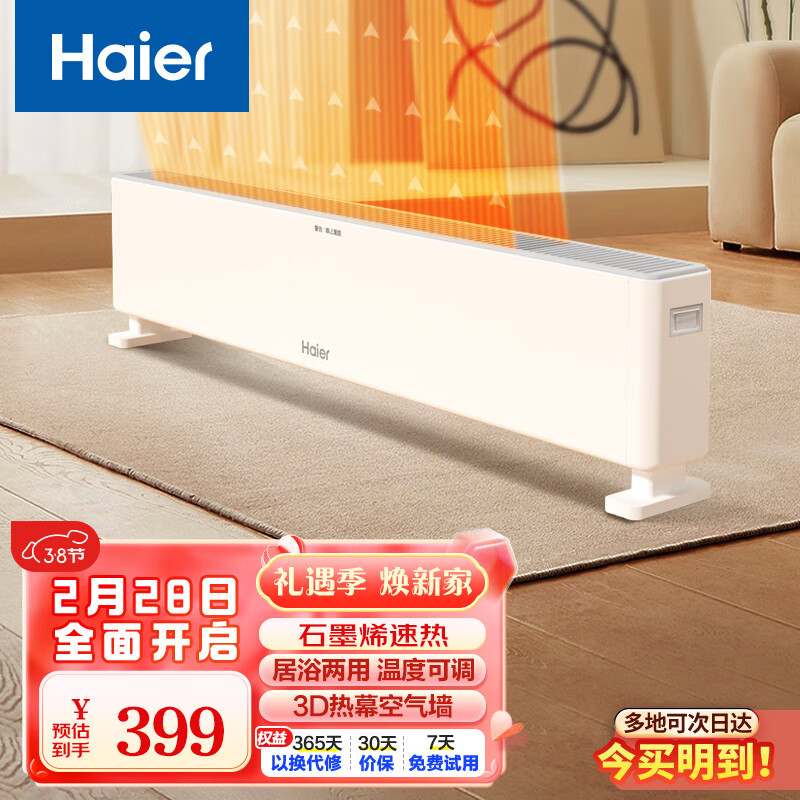 海尔石墨烯踢脚线取暖器家用电暖器大面积电暖气片移动地暖大面积暖风机速热移动地暖烤火炉HNK-2223A价格:399.00元!