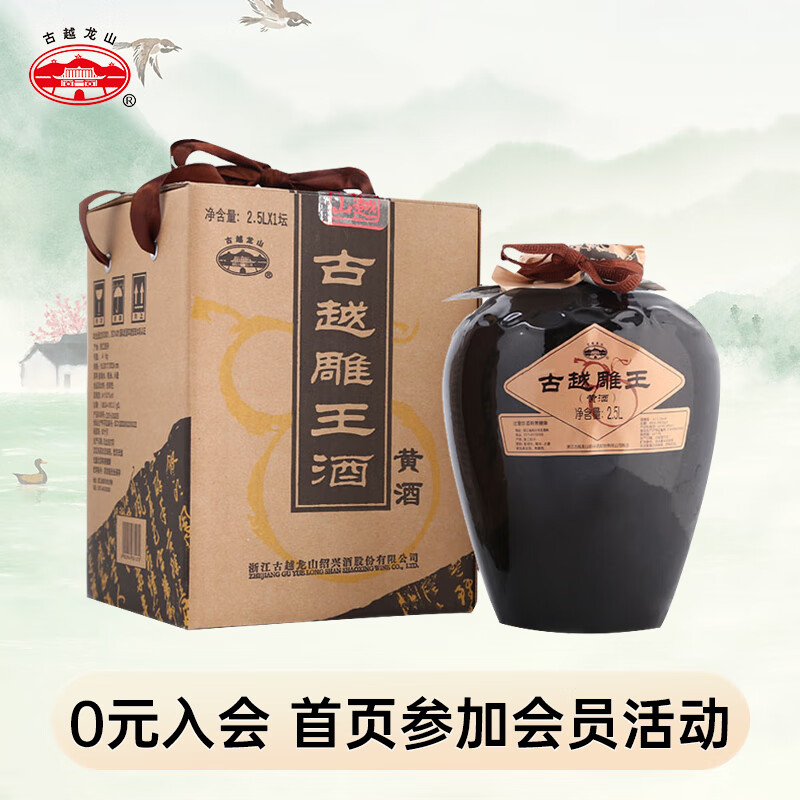 古越龙山 古越雕王 半甜型 绍兴黄酒 2.5L 坛装价格:98.00元!