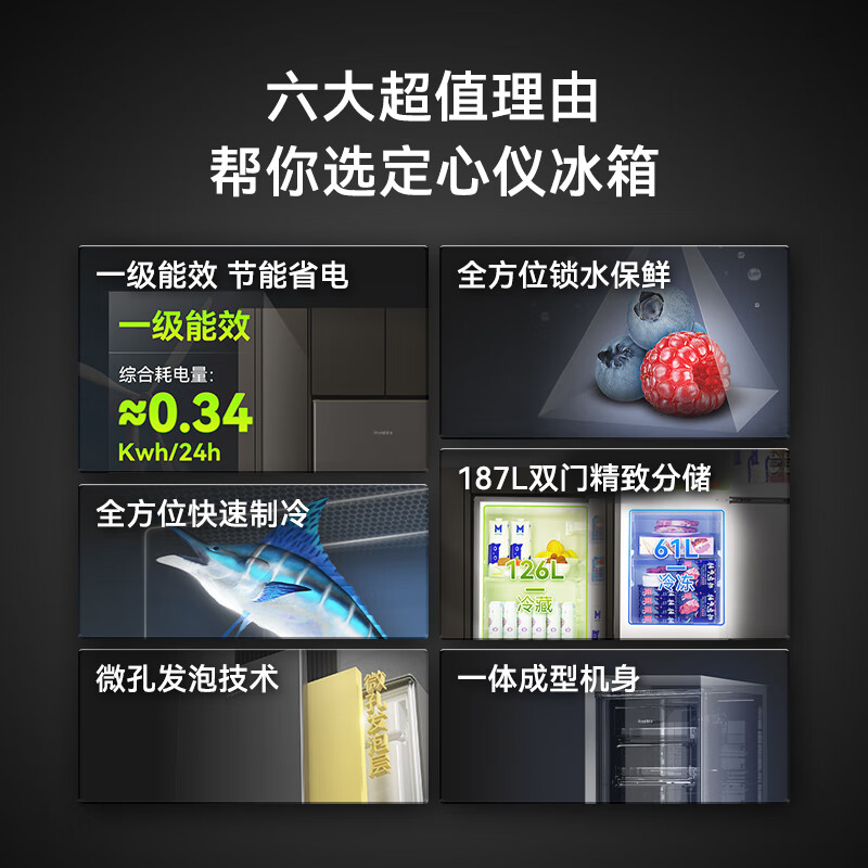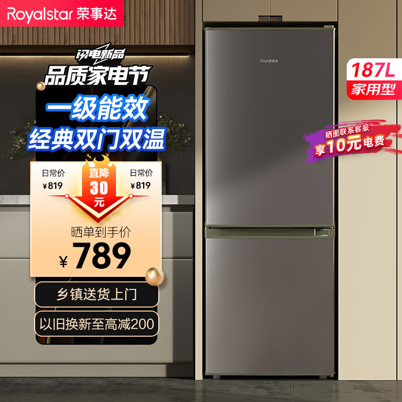 荣事达(Royalstar)187升小冰箱小型家用出租房办公室宿舍双开门两门双门二门电冰箱节能省电低音钛深灰色R187价格:799.00元!
