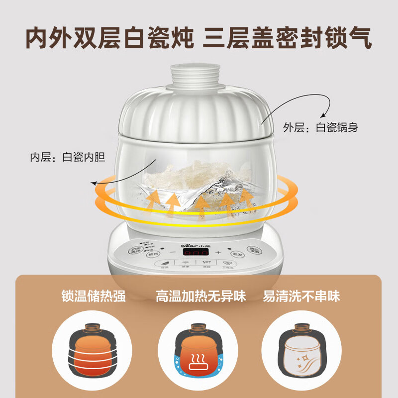 小熊(Bear)燕窝炖盅 电炖锅 电炖盅炖汤锅隔水炖盅 陶瓷 迷你煲汤锅养生煲全陶瓷三重盖锁水0.6L DDZ-B06R1价格:269.00元!