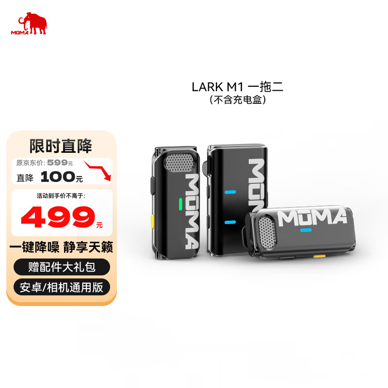 猛玛(MOMA)无线麦克风领夹猛犸手机相机直播一拖二小蜜蜂收音麦vlog视频唱歌声卡单反录音设备全套 LARK M1价格:499.00元!