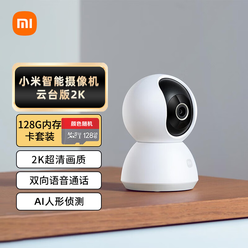 小米摄像头云台版2K+128G存储卡套装 家用监控器宝宝监护器红外夜视高清智能摄像机300W像素婴儿看护器价格:199.00元!