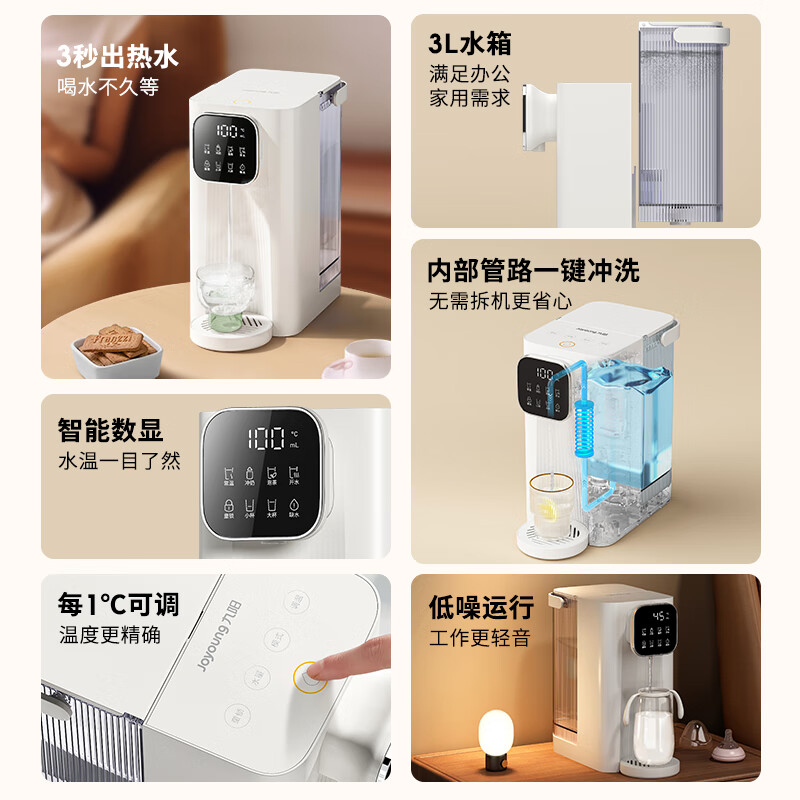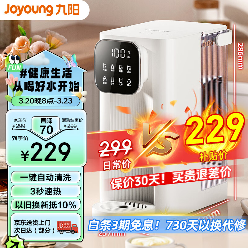 九阳(Joyoung) 即热饮水机 台式小型免安装 3秒速热 即热即饮 多挡水温 独立纯净水箱 直饮机价格:229.00元!