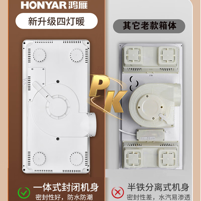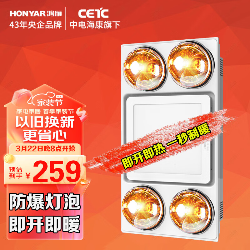 鸿雁集成吊顶灯暖浴霸排气扇照明三合一浴室卫生间灯泡取暖黄金泡B03价格:299.00元!