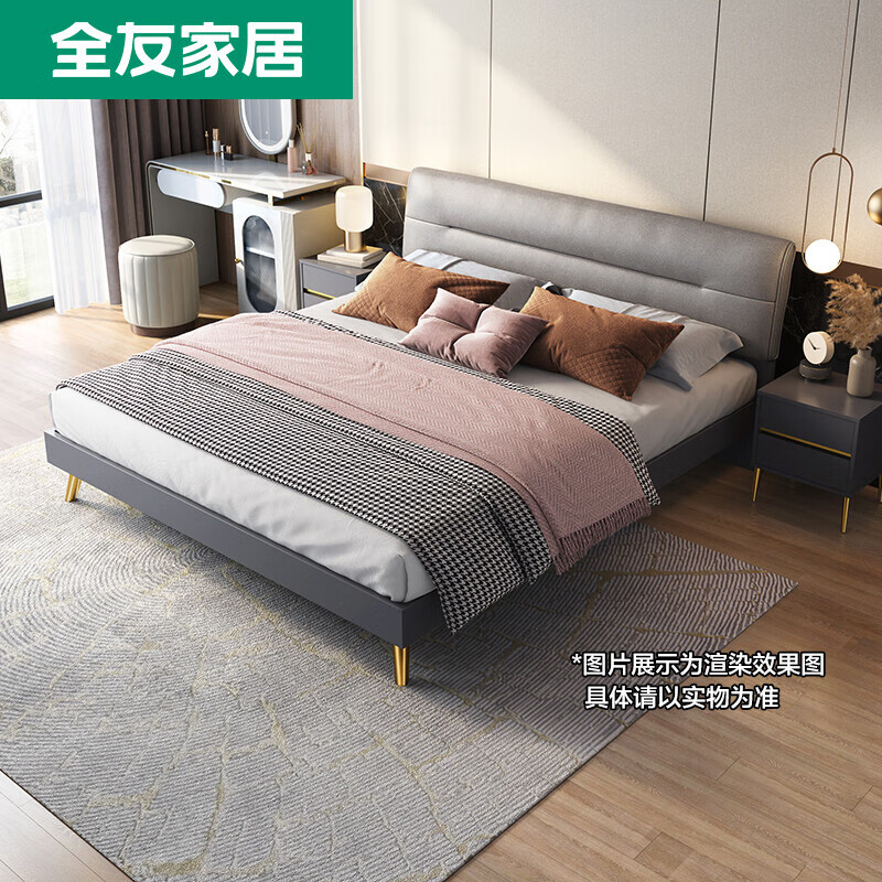 全友家居 意式轻奢双人床主卧科技布艺软包床卧室家具126805 1.5米床C+126803-2床头柜D*2+105171床垫价格:3312.86元!