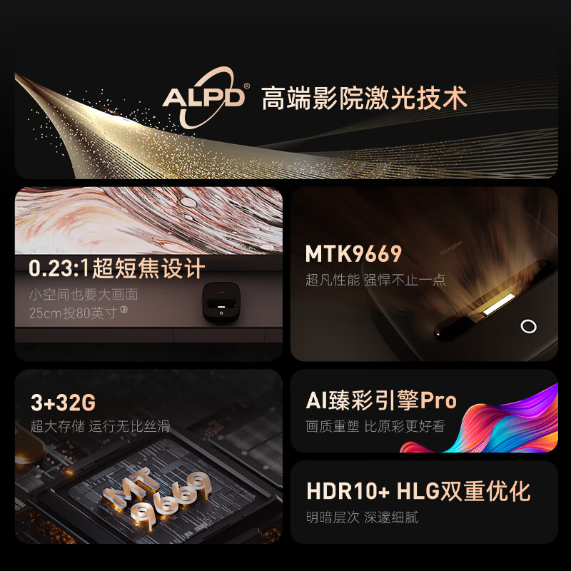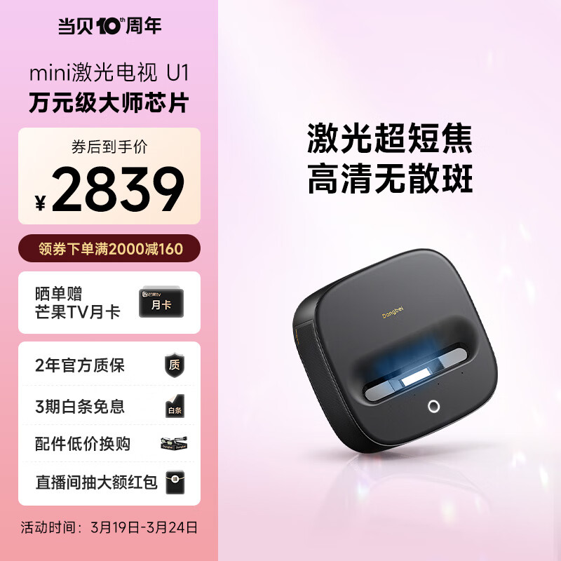 当贝 U1超短焦激光投影仪 家用投影机(MT9669大师芯片 0.23投射比 3G+32G 4K解码 mini激光电视)价格:2999.00元!