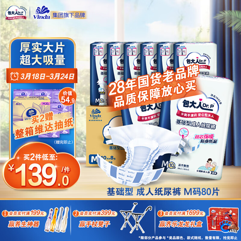 包大人(Dr.P)基础型成人纸尿裤M80片(腰围:70cm-110cm)老年人产妇尿不湿价格:183.00元!