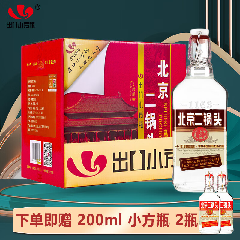 永丰牌北京二锅头清香型白酒出口小方瓶咖标50度纯粮酒整箱装500ml*12瓶价格:420.00元!