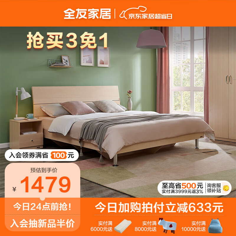 全友家居 床现代简约卧室双人床分段床屏主卧室成套家具板式床106302价格:2112.86元!