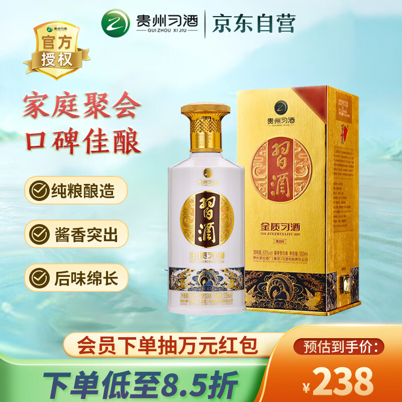 习酒第四代金质 酱香型白酒 53度 500ml 单瓶装 贵州白酒价格:280.00元!