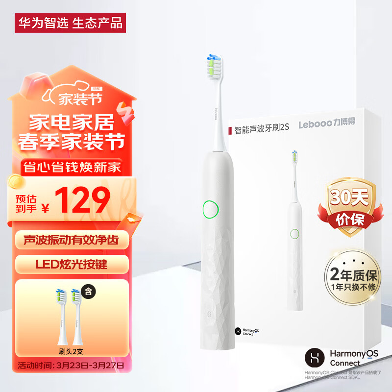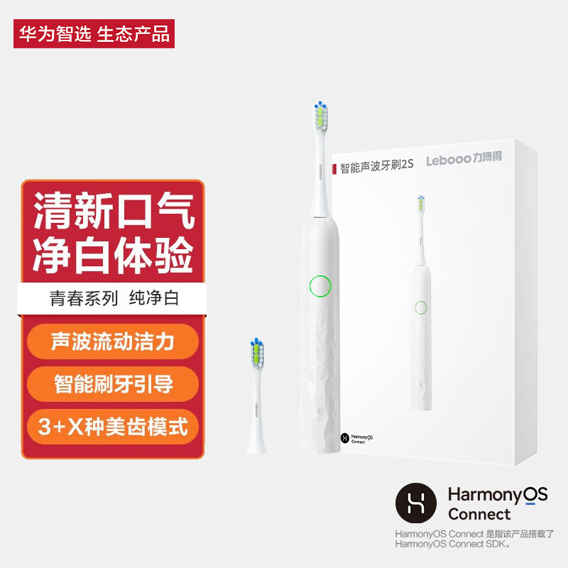 华为智选力博得电动牙刷 智能声波牙刷情侣款 送女生牙刷礼物送女友 青春款2S 纯净白(支持鸿蒙智联)价格:129.00元!