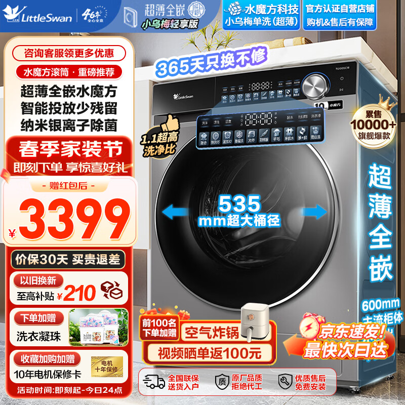 小天鹅(LittleSwan)洗衣机全自动家用10公斤滚筒水魔方小乌梅轻享版超薄全嵌智能投放大筒径10公斤SC18价格:3299.00元!