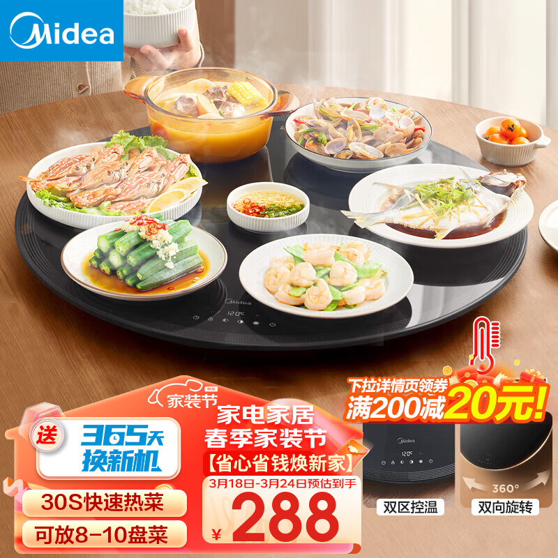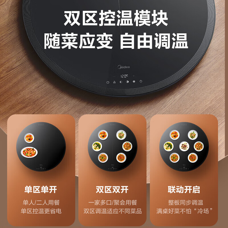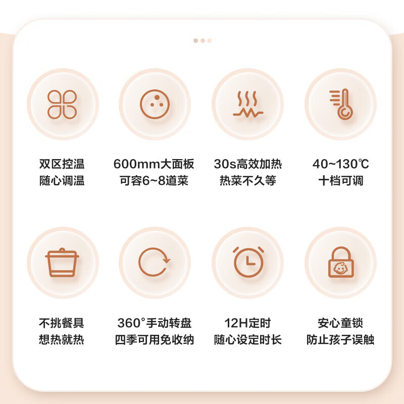 美的(Midea)暖菜板 加热桌垫 热菜板饭菜保温板家用 1分钟速热保温菜板热饭不挑锅具 方形调温/圆形转盘可选 【旋转+双区控温】60Y1- 60cm价格:399.00元!