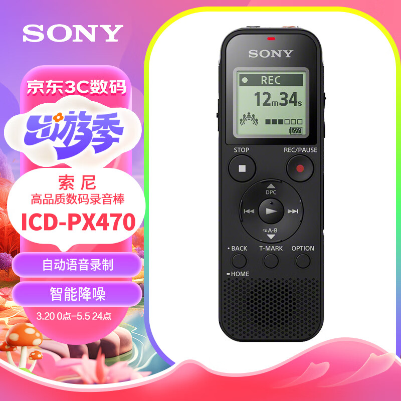 索尼(SONY)录音笔ICD-PX470 4GB 黑色 支持PCM线性录音 便携式学习商务采访 专业大直径扬声器价格:398.00元!