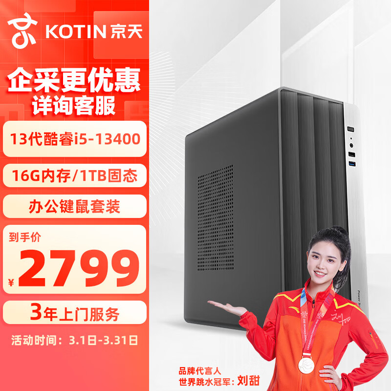 京天Blitz 508 办公商用电脑台式机全套整机( i5-13400/16G/1TB固态 商务键鼠 WiFi )单主机DIY组装机价格:2799.00元!