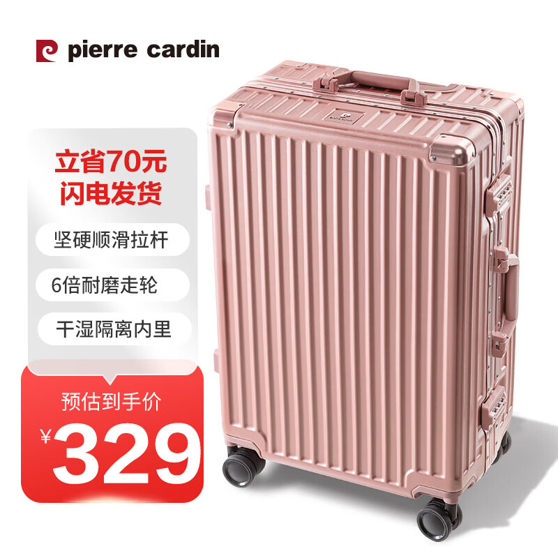 皮尔卡丹行李箱女款铝框万向轮高颜值学生拉杆箱24英寸旅行箱密码箱皮箱子价格:399.00元!