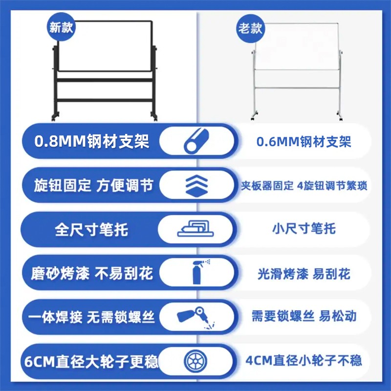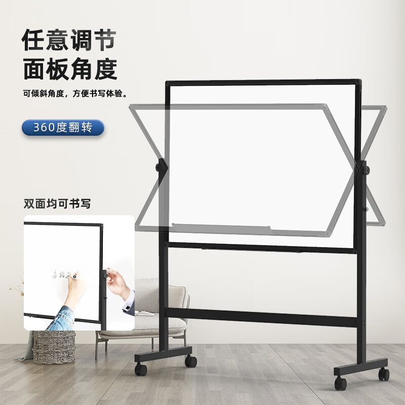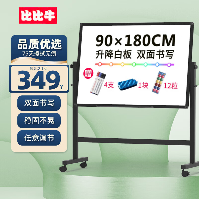 比比牛 白板支架式90*180cm 办公会议写字板 双面可升降翻转 黑金刚BBNV90180价格:349.00元!