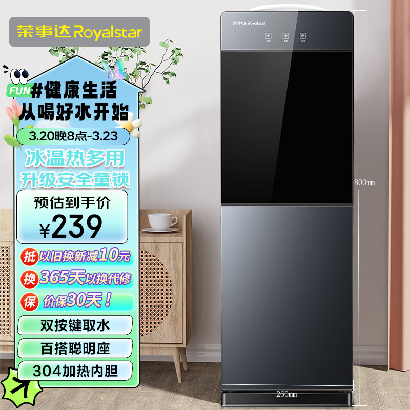 荣事达(Royalstar)饮水机家用立式制冷办公双开门柜式饮水器冷热型YLR0.8-5X71价格:239.00元!