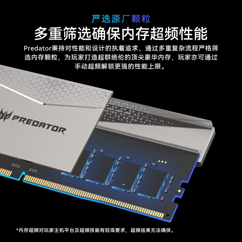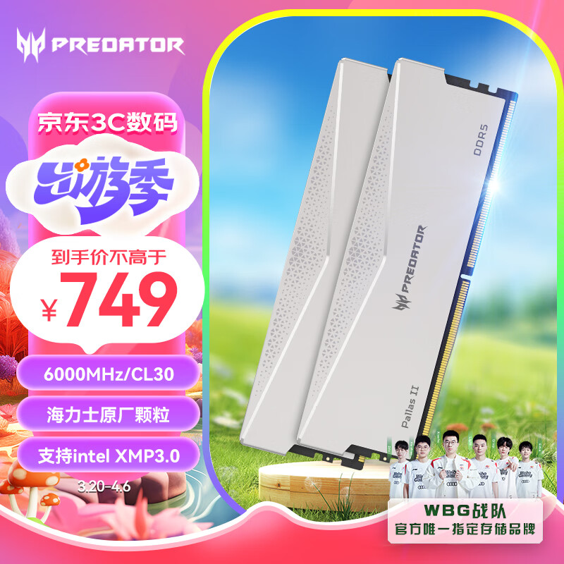 宏碁掠夺者(PREDATOR)32G(16G×2)套装 DDR5 6000频率 台式机内存条 Pallas II 凌霜系列 (C30)星光银 助力AI价格:749.00元!