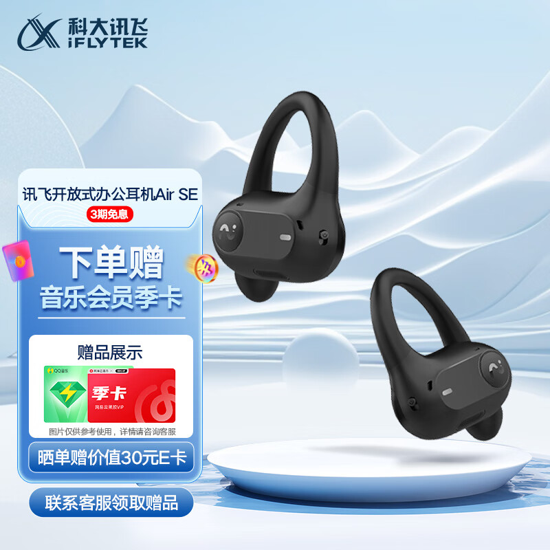 科大讯飞(iFLYTEK)开放式办公耳机 Air SE 黑 无线蓝牙耳机骨传导升级气传导运动录音耳机 同传听译 适用苹果华为价格:959.00元!