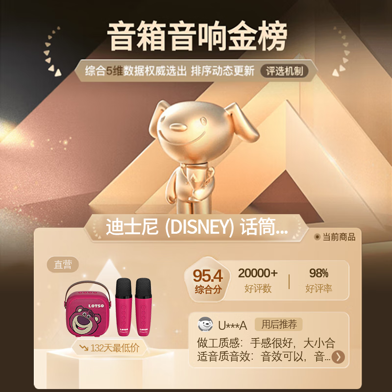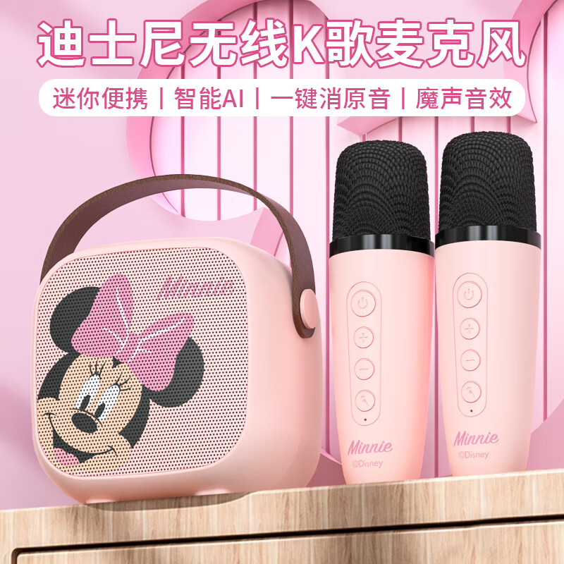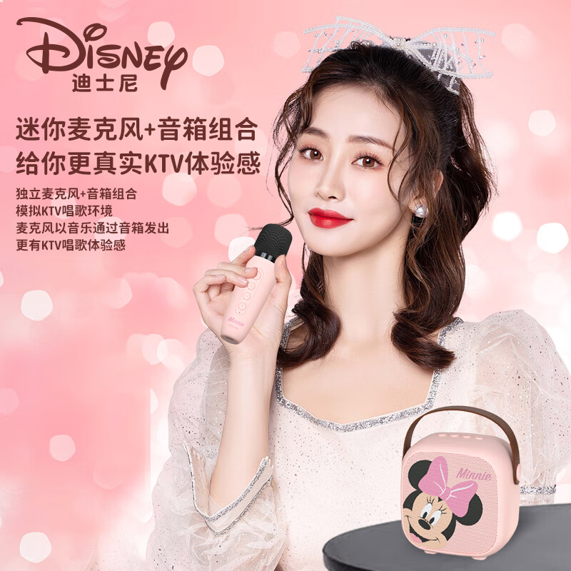 迪士尼(DISNEY)话筒音响一体麦克风k歌音箱自带声卡无线蓝牙手机直播儿童生日礼物家庭ktv音响套装出游MK01米妮粉价格:139.00元!