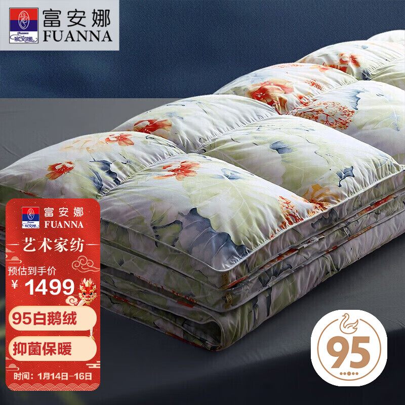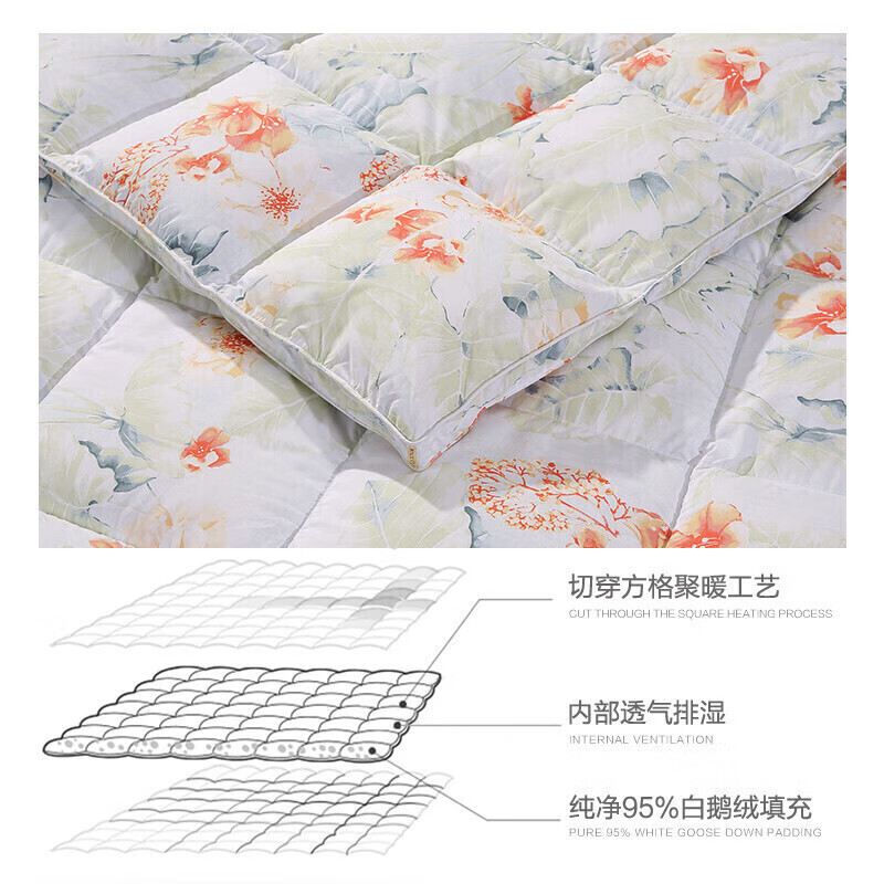 富安娜 欢乐颂 抗菌95%白鹅绒羽绒被 冬厚被 1000g填充 203*229cm 印花价格:2199.00元!