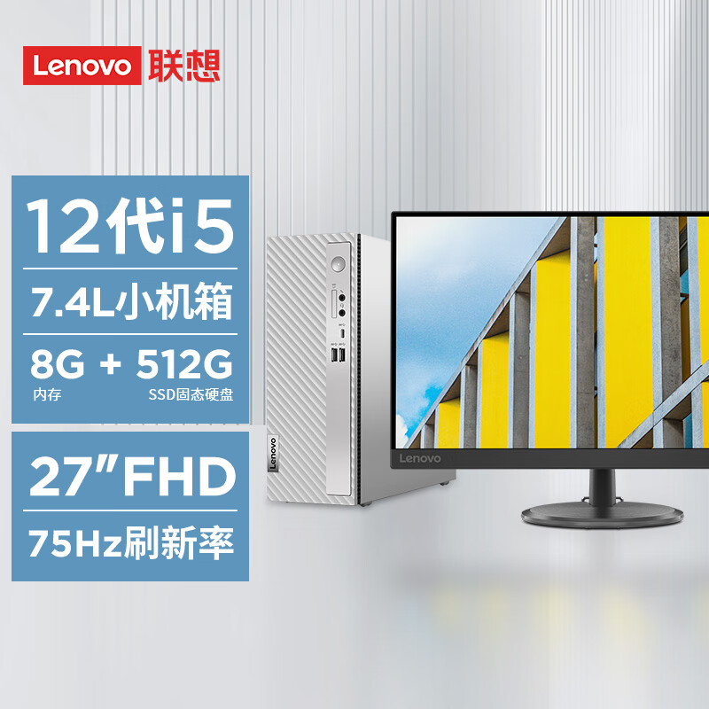 联想(Lenovo)天逸510S商务台式机电脑主机(酷睿12代i5-12400?8G 512G SSD wifi win11 )27英寸显示器价格:3999.00元!