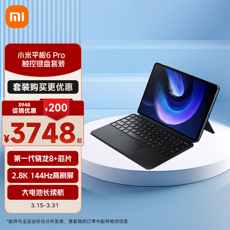 小米平板6Pro 11英寸骁龙8+强芯 144Hz2.8K 12+512GB 移动办公娱乐平板电脑 黑色【触控键盘套装】价格:3748.00元!