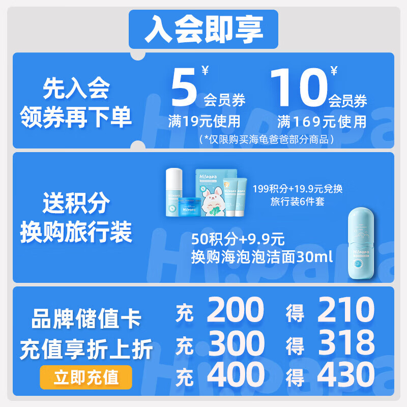 Hi!papa海龟爸爸小蓝瓶儿童面霜补水滋润宝宝氨基酸洗面奶清洁高保湿组合价格:168.00元!