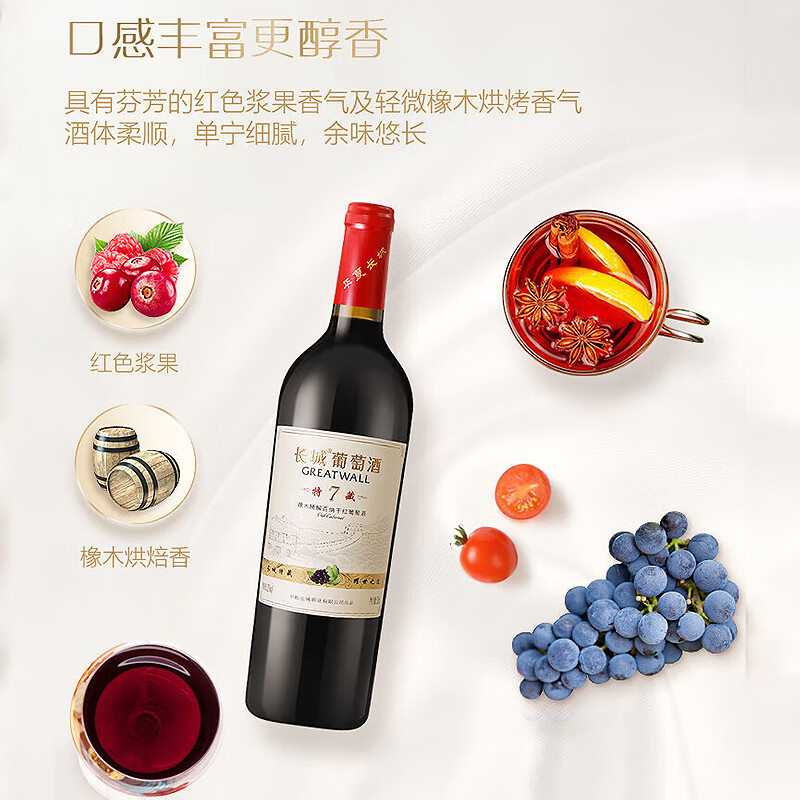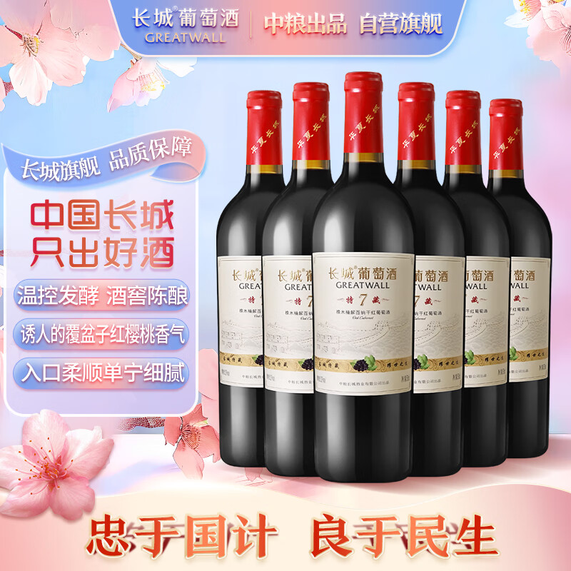 长城 特藏7橡木桶解百纳干红葡萄酒 750ml*6瓶 整箱装价格:480.00元!