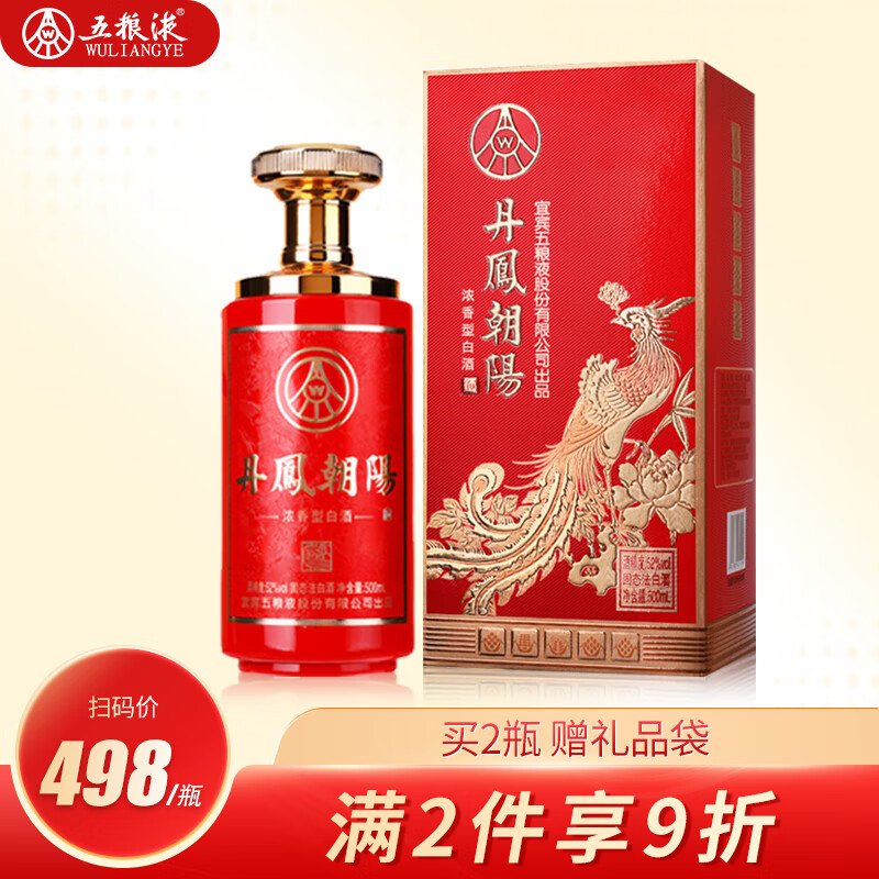 五粮液股份 丹凤朝阳凤来仪中国红 浓香型白酒 52度 500ml单瓶价格:76.00元!