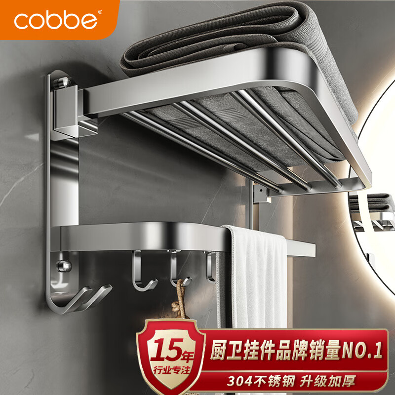 卡贝(cobbe)304不锈钢毛巾架浴室置物架卫生间双层浴巾架免打孔卫浴五金挂件价格:118.00元!