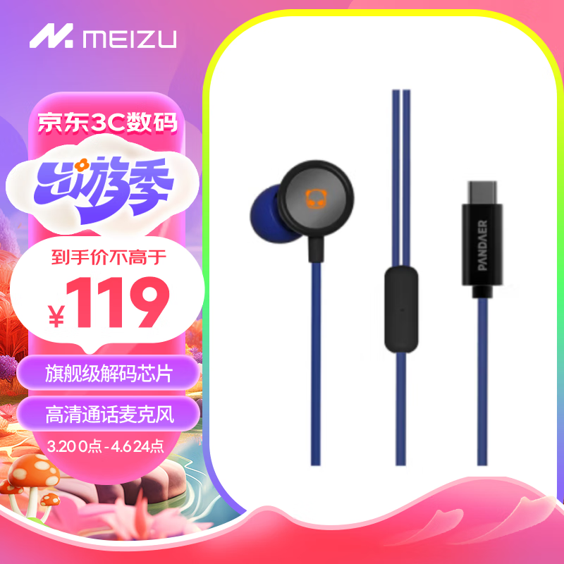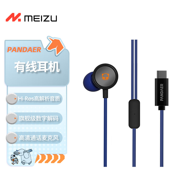 魅族(MEIZU) PANDAER 有线耳机 蓝色 PASA星环宇昼造型 旗舰级解码芯片 Hi-Res高解析音质 有线便捷触控操作价格:119.00元!